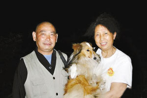 通過智富,“愛之家”找到了黃色雜有黑毛的中華田園犬“前進”和黃白色長毛、背上有一撮黑毛、不足一歲的喜樂蒂狗“乖乖”。徐先生說,在將“前進”和“乖乖”帶離災(zāi)區(qū)時,當?shù)睾芏啻迕穸技娂妵蟻硪蠛蛢芍弧傲x犬”合影。