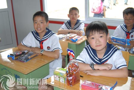 5月31日下午,中國(guó)人民解放軍海軍政治部援建的天河海軍小學(xué)正式掛牌成立,這也是綿竹市第一所受災(zāi)后新建成的小學(xué)校。明天,天河海軍小學(xué)的孩子們可以在新建立的校園內(nèi)過六一兒童節(jié),這批孩子也是綿竹受災(zāi)后首批返回校園的孩子。