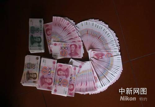 警方當(dāng)場收繳的幾可亂真的假幣。