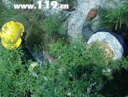 另外一個(gè)受傷人員被甩到離公路100米的深溝中,由于地勢(shì)復(fù)雜、雜草樹木多救援相當(dāng)困難,經(jīng)過認(rèn)真尋找路徑,終于救生繩索離受傷人員很近了,由于深溝離地面公路太遠(yuǎn),必須先通過一步一步向上抬一段距離才能施救,中隊(duì)?wèi)?zhàn)士綁好被救人員艱難的向爬,終于到了安全繩能拉到的距離,但是由于山勢(shì)陡峭,灌木比較多,于是戰(zhàn)士們拿出機(jī)動(dòng)鏈鋸,邊抬受傷者邊用機(jī)動(dòng)鏈鋸掃清路上的障礙,受傷者終于被救了上來迅速送往了醫(yī)院。