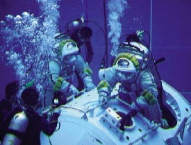 根據(jù)計算,到約十幾米的深度,水的浮力可以基本抵消航天員的重力,達(dá)到一種模擬失重的狀態(tài)。航天員就在這個深度在飛船的模型中進(jìn)行訓(xùn)練。通常這種訓(xùn)練至少需要在水下呆6個小時以上,對于航天員是一種比較大的考驗。(記者 柳志卿)
