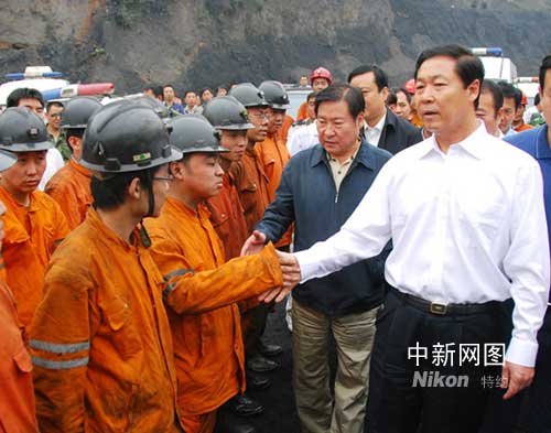 6月14日10時(shí),國(guó)家安監(jiān)總局局長(zhǎng)王君、國(guó)家煤礦安全監(jiān)察局局長(zhǎng)趙鐵錘、山西省省委書(shū)記、省人大常委會(huì)主任張寶順趕到事故現(xiàn)場(chǎng),到井口差察看,并詳細(xì)詢問(wèn)搶救進(jìn)展情況。