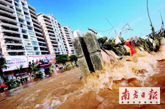 (廣東)省防總昨天下午4時的統(tǒng)計(jì)顯示,從5月25日至昨日8時,廣東大部分地區(qū)連續(xù)遭受強(qiáng)降雨的襲擊,全省平均降雨量為415毫米,是常年同期雨量的2倍多。降雨量超過1000毫米的站點(diǎn)有5個;超過500毫米的站點(diǎn)有424個,降雨范圍達(dá)5.3萬平方公里;超過300毫米的站點(diǎn)999個,降雨范圍達(dá)13萬平方公里。臺山市端芬鎮(zhèn)填坑站過程雨量1089.5毫米,深圳寶安石巖水庫前日降雨量415毫米,江門市獅山水庫站6小時雨量294.5毫米。