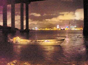 事發(fā)當(dāng)日晚7時(shí)20分左右,廣東邊防總隊(duì)第五支隊(duì)兩名執(zhí)勤哨兵在距離澳門葡京賭場只有一水之隔的珠澳邊防線上巡邏時(shí),發(fā)現(xiàn)橫琴大橋底下一名男子撐著一條小木船正慢慢地向澳門方向劃去,形跡可疑。