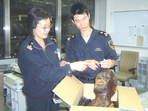 有一次,廣州海關(guān)在一件工藝品中查獲毒品,該工藝品呈圓盤狀,是用樹脂材料制成的頭像,整個(gè)工藝品渾然一體,毒品都藏匿其中,表面沒有一絲破綻,并且在圓盤的周邊都沒有藏匿毒品,所有的毒品都藏匿在頭像面部的突起部位。(記者蔡巖紅)