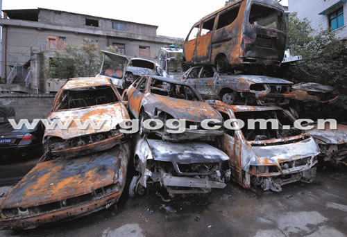 該縣公安局后勤裝備財務科科長陳勇在接受記者采訪時稱,事件發(fā)生后,他負責統(tǒng)計損失,在這次事件中,該局共有25輛警車被燒毀,大樓玻璃幕墻60%被燒壞砸毀,一、二樓的電纜線、光纜線、公安內(nèi)網(wǎng)線全被燒毀,同時還燒毀了法醫(yī)室、20多臺電腦!叭h43萬人口的戶籍資料被全部燒光,一張紙都沒有剩。”陳勇告訴記者,戶籍大廳在公安局一樓左面,暴徒?jīng)_進大樓后,首先燒的就是戶籍大廳!皟H公安局就損失200多萬元!标愑抡f。