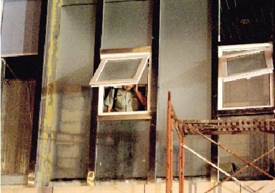 員工搭鋼架逃生