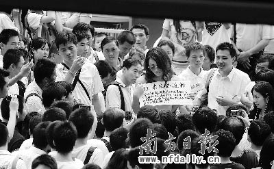 昨日(7月8號)下午2時許,一身著粉紅色衣服、戴太陽鏡、穿黑色網(wǎng)狀絲襪的摩登女郎現(xiàn)身深圳福田區(qū)華強北曼哈購物廣場前,脫掉上衣,只留下黑色內(nèi)衣,手舉“徐滇慶再道歉,因賭房價教授徐滇慶僅在某報刊登半版道歉廣告引起部分市民不滿,身為徐老粉絲,本人獻玉體做版,為其追補道歉,以求對其諒解!”的牌子引來眾多路人圍觀、議論。