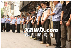 打架吃了虧,就糾集朋友,幫自己報仇;在報仇不成的情況下,又將一家網(wǎng)吧燒毀,給網(wǎng)吧造成了50余萬元的經(jīng)濟損失。案發(fā)后,碑林警方迅速出擊,將涉案的5名主要嫌疑人抓獲。昨日下午,警方在案發(fā)現(xiàn)場,對幾名犯罪嫌疑人進行了公開處理,得到了周圍群眾的好評。