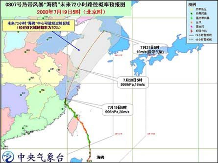 中新網(wǎng)7月19日電 中央氣象臺7月19日06時發(fā)布臺風(fēng)消息:今年第7號強熱帶風(fēng)暴“海鷗”于昨天晚上在福建省霞浦縣境內(nèi)減弱為熱帶風(fēng)暴,今天早晨5時其中心位于浙江省泰順縣境內(nèi),就是北緯27.6度、東經(jīng)119.8度,最大風(fēng)力有8級(20米/秒)。預(yù)計,風(fēng)暴中心將以每小時15-20公里的速度向北偏東方向移動,強度繼續(xù)減弱。