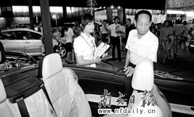 7月19日,袁老在湖南車展上被奔馳一款敞篷車吸引。