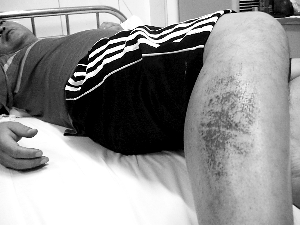昨日,在積水潭醫(yī)院等待手術(shù)的齊景華說(shuō),當(dāng)時(shí)車速太快,他還沒(méi)來(lái)得及反應(yīng)就被“撞飛了”。