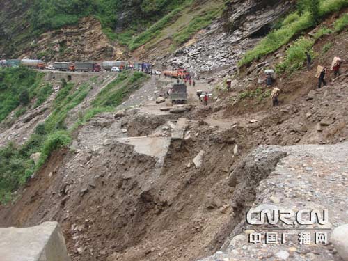 不到兩天時(shí)間,公路中段造成前后兩端400輛車輛受堵,排起長(zhǎng)龍,上千人被困。運(yùn)送生活物資只能靠武警交通二支隊(duì)官兵臨時(shí)利用圓木和預(yù)制板搭建的人行通道快速通過。另外,公路中段造成樟木口岸油料緊缺,給搶險(xiǎn)保通帶來一定影響。西藏交通部門連同中交一勘院專家組和負(fù)責(zé)搶險(xiǎn)保通任務(wù)的武警交通第二支隊(duì),迅速組成搶險(xiǎn)保通指揮部,緊急商討制定施工方案。由于濃霧、山體滑坡繼續(xù)擴(kuò)大,加之不間斷的強(qiáng)降雨等眾多不確定因素,給整個(gè)搶通工作帶來相當(dāng)大的難度。