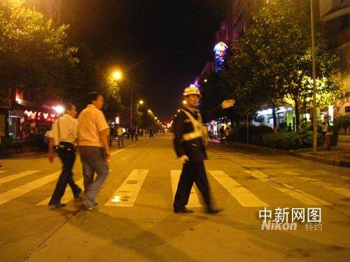 今晚八時(shí)許,在昆明城西交林路發(fā)現(xiàn)一可疑黑色箱包,昆明出動(dòng)大批警力將現(xiàn)場封鎖。圖為交林路與人民西路路口交警在“斷交”。 王林 攝