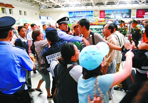 就乘客所言的“遭南航一工作人員辱罵”的情況,袁權(quán)說(shuō)“沒(méi)有這回事”。機(jī)場(chǎng)一警官稱(chēng),當(dāng)時(shí)并非警民沖突。經(jīng)調(diào)查,系南航工作人員說(shuō)了一些過(guò)激的言辭,導(dǎo)致乘客情緒失控,當(dāng)時(shí)有乘客做出了一些過(guò)激的行為,還有些人沖進(jìn)服務(wù)點(diǎn)推翻電腦,但電腦未損壞。