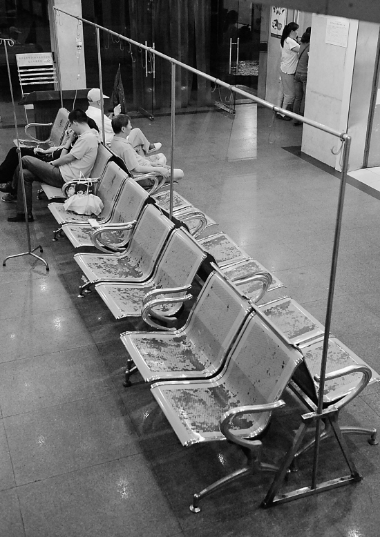 “我去之前先打聽了一下,說要排10多個小時的隊,掛號的人都聚集在醫(yī)院急診的抽血化驗候檢室,那里有椅子可以休息!标惻吭谙挛5點半左右來到醫(yī)院,候檢室里已有十來個外地模樣的人等著了,三三兩兩,有男有女。