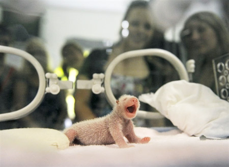 從7月26日17∶24至7月27日06∶55,成都大熊貓繁育研究基地的大熊貓?jiān)?4小時(shí)內(nèi)順利產(chǎn)下了三胎四仔寶寶,同一個(gè)種群的大熊貓?jiān)诙潭痰臅r(shí)間內(nèi)如此密集地順利產(chǎn)仔,在全球大熊貓繁育史上尚屬首次。這批震后成都首批新生大熊貓寶寶,顯得彌足珍貴,意義深遠(yuǎn)。
