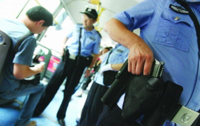 昨天,民警首次在公交車上佩槍執(zhí)勤