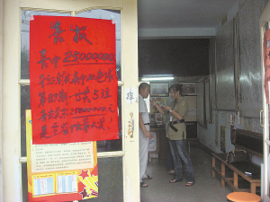 據(jù) “彩票大贏家”投注站店主介紹,這個站在兩年前,曾經(jīng)開出過91.5萬的大獎,“這回刷新紀錄了!庇浾咦⒁獾剑蹲⒄镜恼信票尘,印了很多“2元=500萬”的字樣,“這下成真的了!”