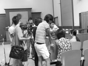 休庭時(shí),記者采訪(fǎng)受害女博士 陳善君攝