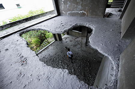 沙坪壩區(qū)平頂山的別墅群最近遭到浩劫,其中26棟被人砸出大洞,墻壁和天花板部分鋼筋被人切割盜走,現(xiàn)場(chǎng)慘不忍睹。