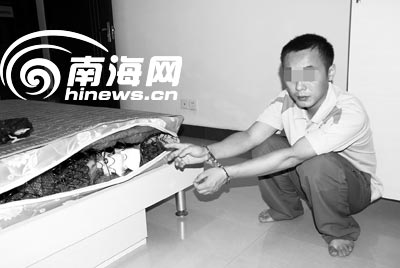 販毒老大吳忠(化名)指認(rèn)藏匿在床墊下的毒品。