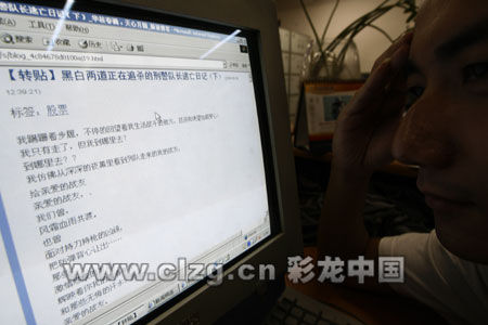 網(wǎng)友上網(wǎng)觀看關于“刑警隊長逃亡日記”的帖子。王磊 攝