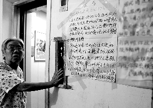 關(guān)于居民貼的“公告”,李先生說(shuō),雖然大家能理解其心情,可寫(xiě)這些臟話也對(duì)居民造成視覺(jué)污染,他們正在調(diào)查作者身份,一旦查出,作者要為其行為負(fù)責(zé)。(記者田北北)