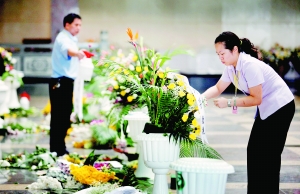 昨天上午,在廣州殯儀館銀河園的白云廳里,來(lái)自廣州市殯葬一線的79名職工,分別參加了“挽聯(lián)插花”、“業(yè)務(wù)洽談”、“治喪禮儀”三個(gè)專業(yè)的職業(yè)技能鑒定競(jìng)賽。來(lái)自國(guó)家民政部和廣州市民政局的考官們,全程見證了這場(chǎng)特殊的考試。