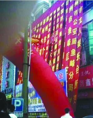 8月28日,柳州市香格里拉夜總會開業(yè),無數(shù)祝賀的條幅幾乎把夜總會整個樓房蓋住,其中有標(biāo)注柳州市魚峰區(qū)政府和柳州市魚峰區(qū)公安分局的祝賀條幅格外引人注目,并在網(wǎng)上引起熱議。