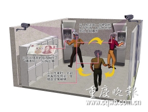 他們商定,先由蘇泊羽去存錢,如果沒事,再叫邱果拿錢來,喻勝則負(fù)責(zé)望風(fēng)。凌晨3時(shí)許,蘇泊羽戴上假發(fā)來到南坪一個(gè)銀行的ATM機(jī)前,低著頭,縮手縮腳地將一張銀行卡放入,并將3000元假幣放入錢槽。