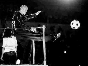 這只黑白相間的足球以一個(gè)漂亮的“貝氏弧線”飛向遠(yuǎn)處,現(xiàn)場(chǎng)一名年輕的志愿者飛身上前,穩(wěn)穩(wěn)地把足球攬入懷中。懷抱足球,他那燦爛的笑容感染了現(xiàn)場(chǎng)和電視機(jī)前的億萬(wàn)觀眾,人們情不自禁地為這位快樂的陽(yáng)光男孩、為偉大的奧林匹克精神歡呼。