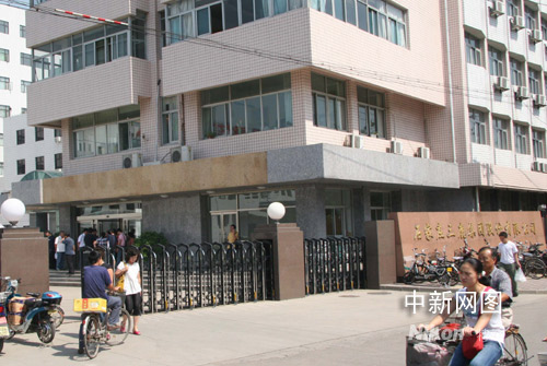 三鹿集團門口不時有人觀望。高新國 攝