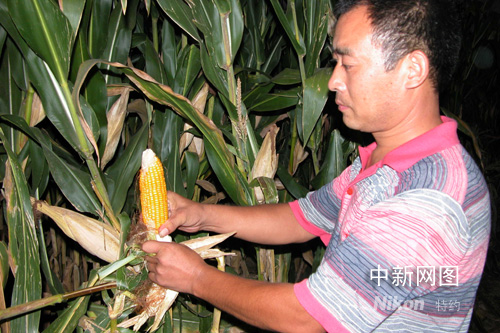 圖為一村民向記者展示穗小、不飽滿的銳步1號(hào)良種玉米。作者 呂子豪