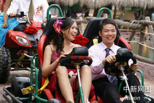 坐在卡丁車上的新人充滿現(xiàn)代氣息。作 者:孫建駒