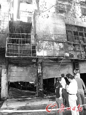 事發(fā)的這家裝飾材料商行位于惠城區(qū)麥地麥岸路12號街邊一樓。記者昨天上午在現(xiàn)場看到,這個商鋪寬約二三十米,卷閘門及里面的貨物及摩托車全部燒成了廢鐵,樓上外墻都被熏黑了。二樓的窗口被消防隊員撬開以便于救人。