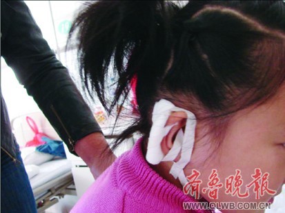 王女士趕緊帶孩子趕到聊城市第二人民醫(yī)院,急診室醫(yī)生稱孩子耳朵撕傷較重,需住院治療。醫(yī)生通過麻醉手術(shù)成功為小雨的右耳進(jìn)行了縫合。小雨的父親張先生告訴記者,孩子右耳后與頭皮連接處皮膚裂傷長約3厘米,并且已傷及皮下,醫(yī)生為孩子縫了四針。張先生說,事件發(fā)生后第二天,小雨班主任委托其家人送來了1000元錢,但其本人一直沒露面,這兩天他們打電話時王老師的電話也打不通了。