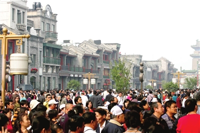 黃金周前4天,前門(mén)大街接待的游客數(shù)分別為15萬(wàn)、23萬(wàn)、30萬(wàn)、31萬(wàn),其中國(guó)慶當(dāng)天和昨天的客流量分別創(chuàng)了前門(mén)開(kāi)街后的新高。由于游人較多,平均每天都會(huì)有20名左右走失的群眾被民警帶回指揮部。近幾天走失的游客多數(shù)為老人及小孩。警方提醒,希望前來(lái)游覽的游客能夠照顧好身邊的親人,以防走失。