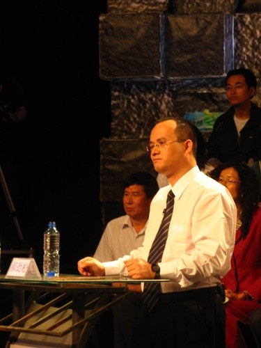 主持人:首先請出我們第一組的PK嘉賓!熱烈掌聲來歡迎,青年法律學(xué)者郝勁松,郝先生,你好!(掌聲)跟他PK的對象,是著名的媒體評論人五岳散人。歡迎五岳散人!(掌聲)一個是散人,一個是律師人。現(xiàn)問學(xué)法律的,您覺得從頭到尾,炒到這年來,馬上就要真相大白了,在法庭上,您覺得應(yīng)該將他判刑嗎?