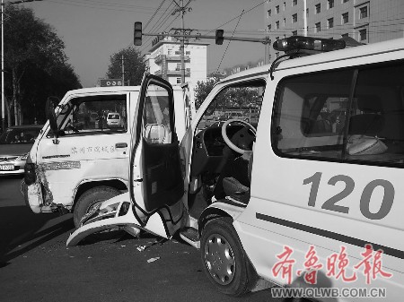 10月7日上午8點10分,一輛從濱州黃河三路由東向西直行的120急救車行駛至黃河三路與渤海五路交叉口時,與一輛由北向南正常行駛的小貨車相撞,120車車頭底部當(dāng)場被撞了下來,所幸車內(nèi)人員沒有受傷。