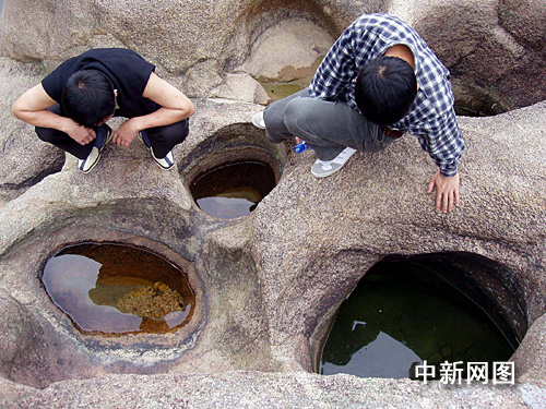 中游可謂是石峽谷的“精華”所在,這里不但大奇石眾多,而且有一個個別處少見的“石旋渦”,這是由于每逢豪雨時節(jié),峽谷內(nèi)從上游傾瀉而下的洪水如脫韁的野馬,直沖向這里的“亂石陣”,久而久之,石縫被鉆成了石洞,石質(zhì)較疏松的就成了“旋渦”,構(gòu)成石河床上有許許多多的“井”。