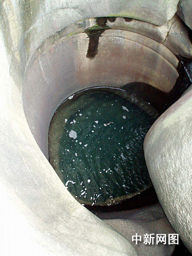 最奇的是,在一個石壁下有一個深七八米、直徑二米有余的石井,“井”壁非常光滑,人把頭小心翼翼地往井底探視,深不見底。不難想象,每當山洪咆哮而來時,雷霆萬鈞的水由于受到了石壁的阻攔,狂卷著猶如大水槍往石底下“穿石”而出,年久月深,井越深、越大,從而印證了“水能穿石”的道理。