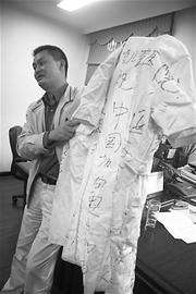 此外,川大華西醫(yī)院還將近百件抗震救災(zāi)醫(yī)療隊(duì)的服裝等進(jìn)行了捐贈(zèng),其中包括來(lái)自黑龍江、江西、北京等20多個(gè)省市。廖志林表示,地震后有30多個(gè)醫(yī)療隊(duì)進(jìn)駐華西醫(yī)院醫(yī)治傷員,這次從全國(guó)各地郵寄而來(lái)的醫(yī)療服,是通過(guò)書信號(hào)召他們捐贈(zèng)出來(lái)的,希望建川博物館能全面展現(xiàn)抗震救災(zāi)過(guò)程中各方面眾志成城的場(chǎng)景,目前已收集完成了20多個(gè)醫(yī)療隊(duì)的相關(guān)物品!耙患奈镆粋(gè)故事,我們?cè)谧龅卣鸩┪镳^的時(shí)候更注重收藏感動(dòng)人心的背后故事!焙涡掠卤硎,薛梟的故事讓無(wú)數(shù)的中國(guó)人記住了他,博物館收藏其簽名的可樂(lè)罐主要是希望為參觀者呈現(xiàn)一個(gè)不可磨滅的記憶,就像給妻子最后尊嚴(yán)的摩托車、為搭板房勞累而犧牲的武文斌的雕像一樣。博物館一直想尋找的是那些飽含故事的實(shí)物,“電視上不是說(shuō),有位媽媽為保護(hù)自己的孩子不幸遇難,她在手機(jī)上留下了‘親愛(ài)的寶貝,如果你還活著,請(qǐng)記住媽媽愛(ài)你’的短信,但苦苦尋覓這部手機(jī),都沒(méi)有結(jié)果。讓我們非常遺憾!