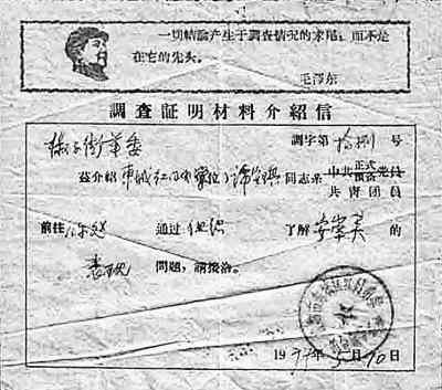 “那個年代的中國人,沒有介紹信寸步難行。1971年,黃梅縣文化館有機(jī)會去武漢參加文藝演出放電影,同事小袁老家在武漢,我們就讓他拿著介紹信帶著膠片去了。沒想到小袁把介紹信揣在兜里,洗衣服時給洗壞了。正巧遇上工人糾察隊,小袁拿不出介紹信,被當(dāng)作‘黑戶’給糾察去,單位領(lǐng)導(dǎo)趕去才把他接出來!