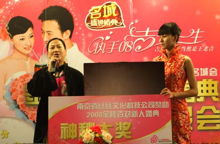 據(jù)承辦這次活動的負責人袁衛(wèi)國介紹,目前新人報名人數(shù)踴躍,已經(jīng)接近百對,其中,在這次四川地震中的兩對抗災英雄也將參加本次集體婚禮;有眾多贊助商積極參與其中,他們還將邀請品牌企業(yè)老總和福布斯上榜人物在秦淮河畔、明城墻下,與所有新人共同見證百年愛情,由于婚典現(xiàn)場活動中,有祈福許愿、放飛風箏、水景表演、煙火晚會等20多個浪漫經(jīng)典的環(huán)節(jié),會盡量邀請到海內(nèi)外知名人士親身參加其中,與新人進行零距離的接觸。