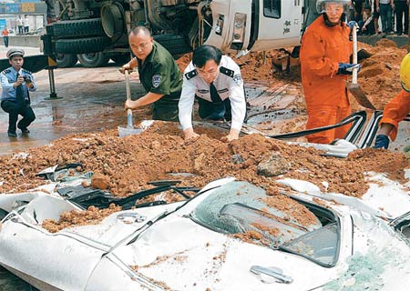 據(jù)記者回憶,10月10日上午10時(shí)50分左右,在深圳市北環(huán)大道西行方向南山立交路段,一輛泥頭車突然失控翻車,將旁邊一輛白色轎車壓扁。事發(fā)后,市交警局局長(zhǎng)劉鳳俊及時(shí)趕到現(xiàn)場(chǎng)組織指揮救援。救援人員調(diào)來兩輛大型吊車,吊住泥頭車首尾兩處,試圖將泥頭車吊起。但剛啟動(dòng)吊車,救援人員就發(fā)現(xiàn)泥頭車裝載的泥土太重,很可能會(huì)掉落下來將轎車埋住。經(jīng)現(xiàn)場(chǎng)研究,救援人員決定先挖出部分泥土后,再吊起泥頭車,F(xiàn)場(chǎng)十幾名救援人員迅速拿來鐵鏟與鋤頭,開始挖土。劉鳳俊沖到泥頭車前,因沒工具了,他就用手不停地挖泥土,并大叫:“加油挖。 痹趧ⅧP俊的帶領(lǐng)下,現(xiàn)場(chǎng)的幾十名救援人員一起用手刨土救人,最終從車內(nèi)救出一名女嬰。