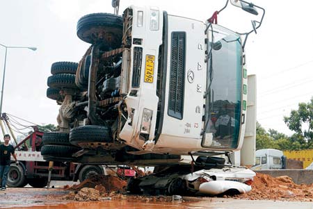 一泥頭車壓扁轎車致2死1傷,轎車內(nèi)一女嬰在母親身體庇護(hù)下奇跡生還。