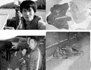 死者林松嶺生前照片、事發(fā)時照片和其母抵達現(xiàn)場后的照片