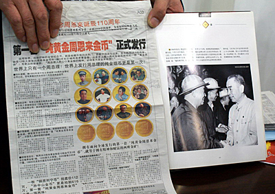 國圖銷售的周總理紀(jì)念金幣與杜修賢攝影作品的比對