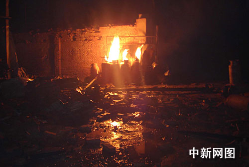 據(jù)一位現(xiàn)場救援的消防人員介紹,爆炸現(xiàn)場濃煙四起,一團(tuán)團(tuán)火苗從液化氣罐中噴出六七米高,發(fā)出“吱-吱”的聲響,廠區(qū)內(nèi)不時發(fā)生爆炸,鋼結(jié)構(gòu)車間受損嚴(yán)重,頂部及東北角墻體被爆開,據(jù)現(xiàn)場了解,里面已有10多枚液化氣罐發(fā)生了爆炸。而廠區(qū)東側(cè)為居民住房,距車間約5米,廠區(qū)西側(cè)為阿克蘇王三油漆化工廠,南側(cè)為空地,堆放成品發(fā)泡網(wǎng),北側(cè)為該單位庫房,堆放大量成品發(fā)泡網(wǎng),油漆車間與發(fā)泡網(wǎng)廠車間相連,里面放著價值約30余萬元的涂料和設(shè)備,火勢力借著風(fēng)力逐漸向四周蔓延,如不及時撲救,很可能發(fā)生火燒連營的危險,造成更大的經(jīng)濟(jì)損失。